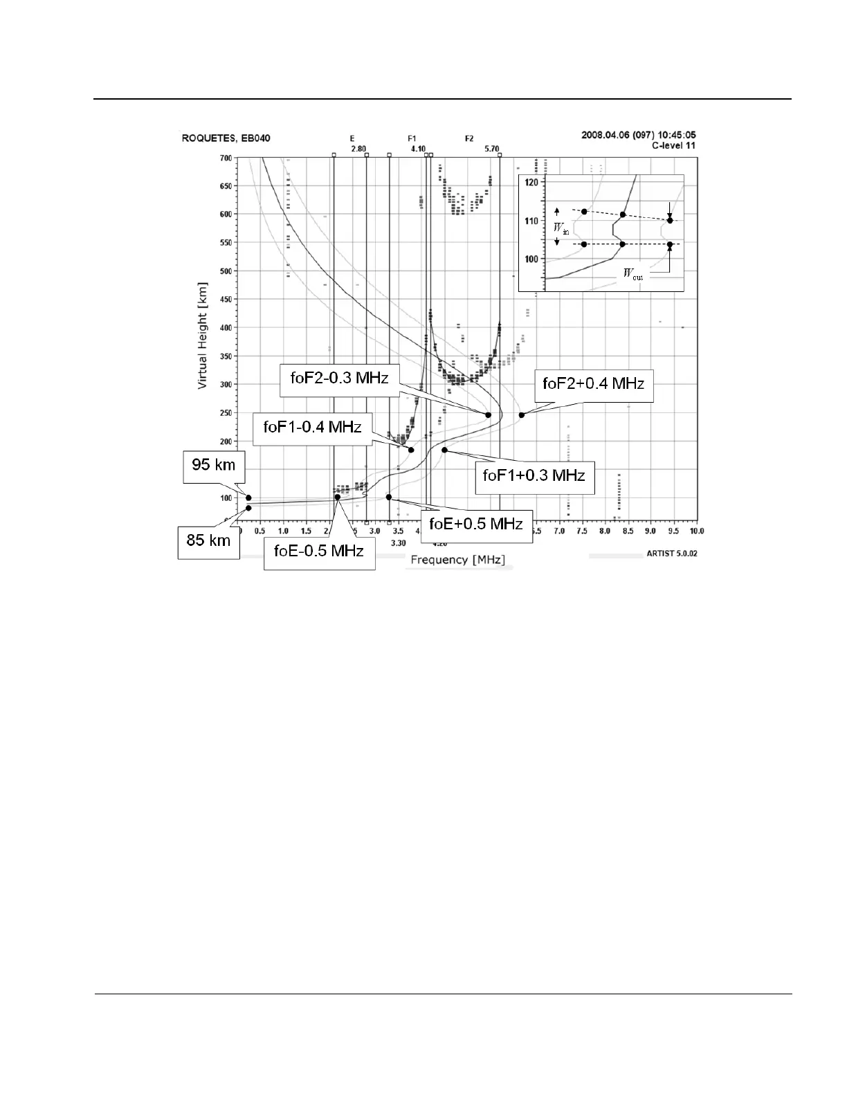 Figure 5-8: Autoscaled Ionogram from Roquetes, Spain, with Inner and