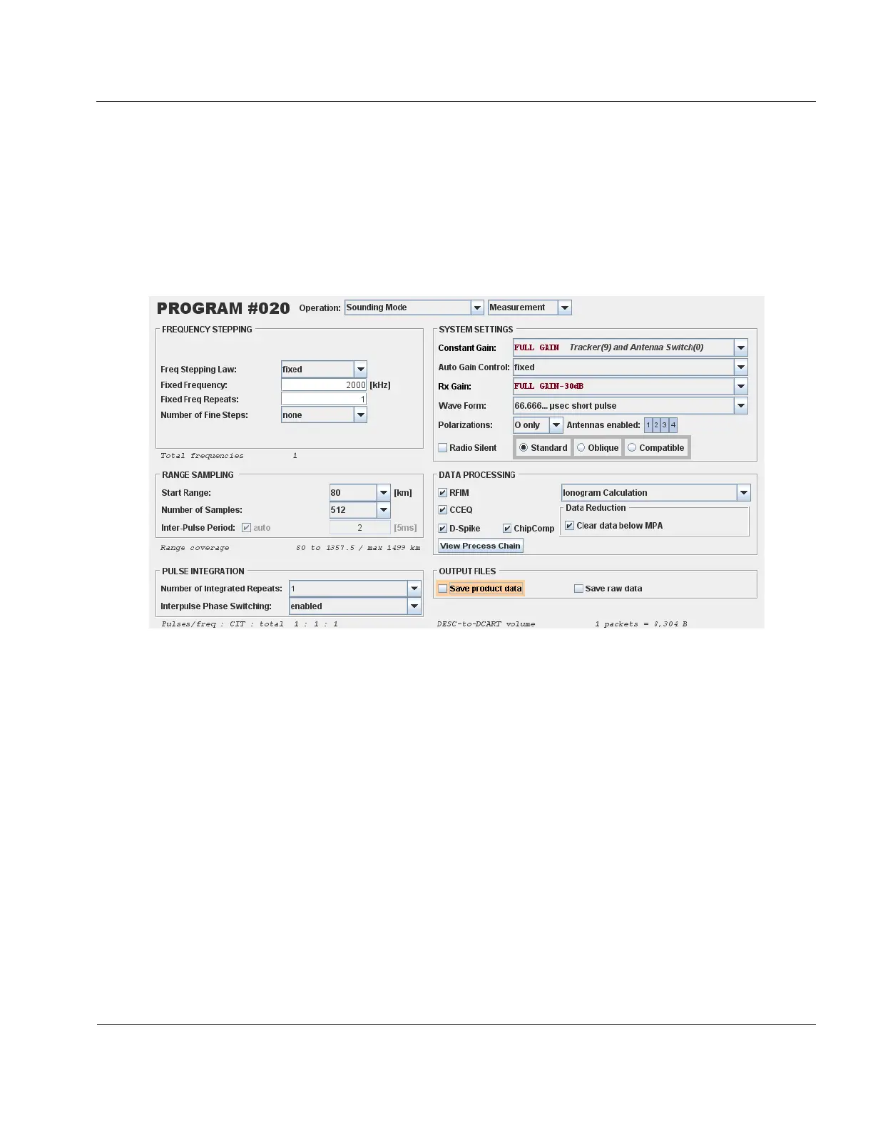 of this program do not matter; Fixed frequency, start range, number of samples, Rx Gain, etc all do not affect