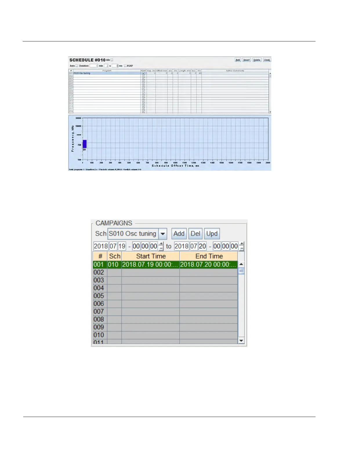 Figure 6-11: Osc tuning schedule entered as a campaign