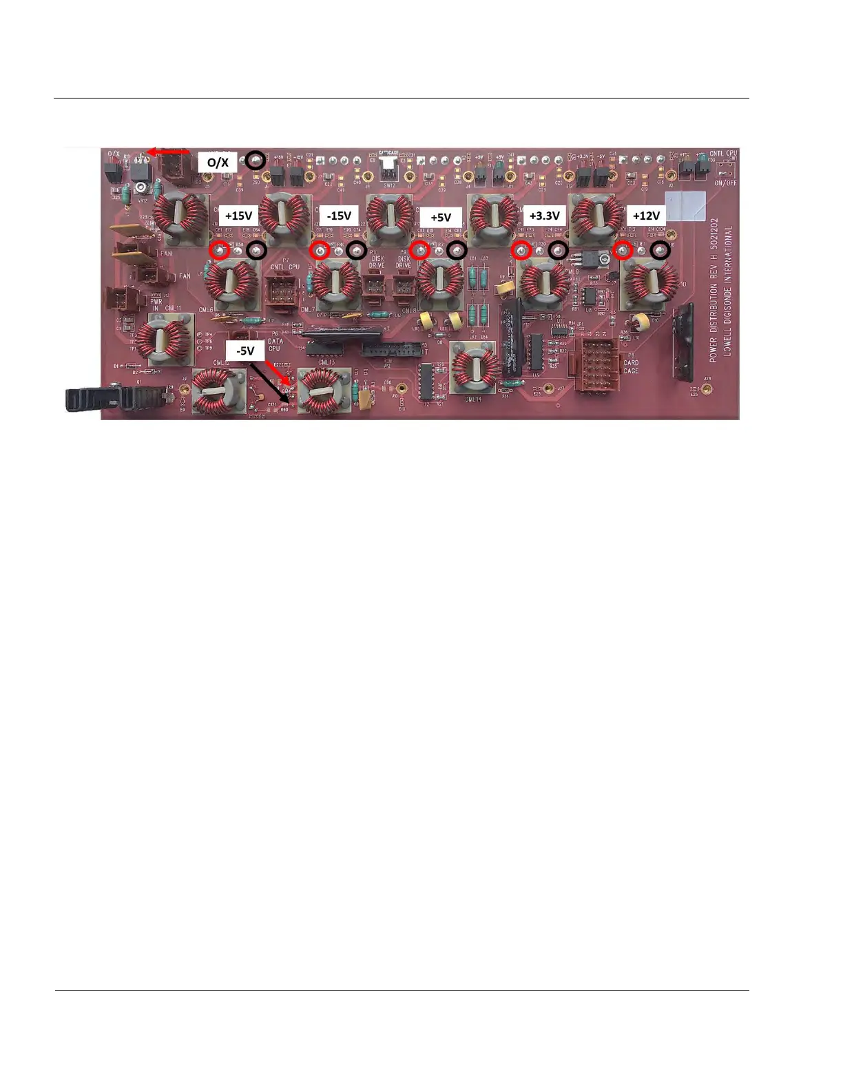 Figure 6-25: Power Distribution Card Showing Locations to Measure Output Voltages