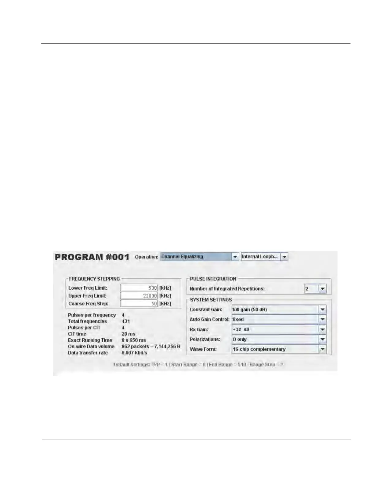 Channel Equalizing program is pre-configured prior to the sounder shipment, but it is important that its fre-