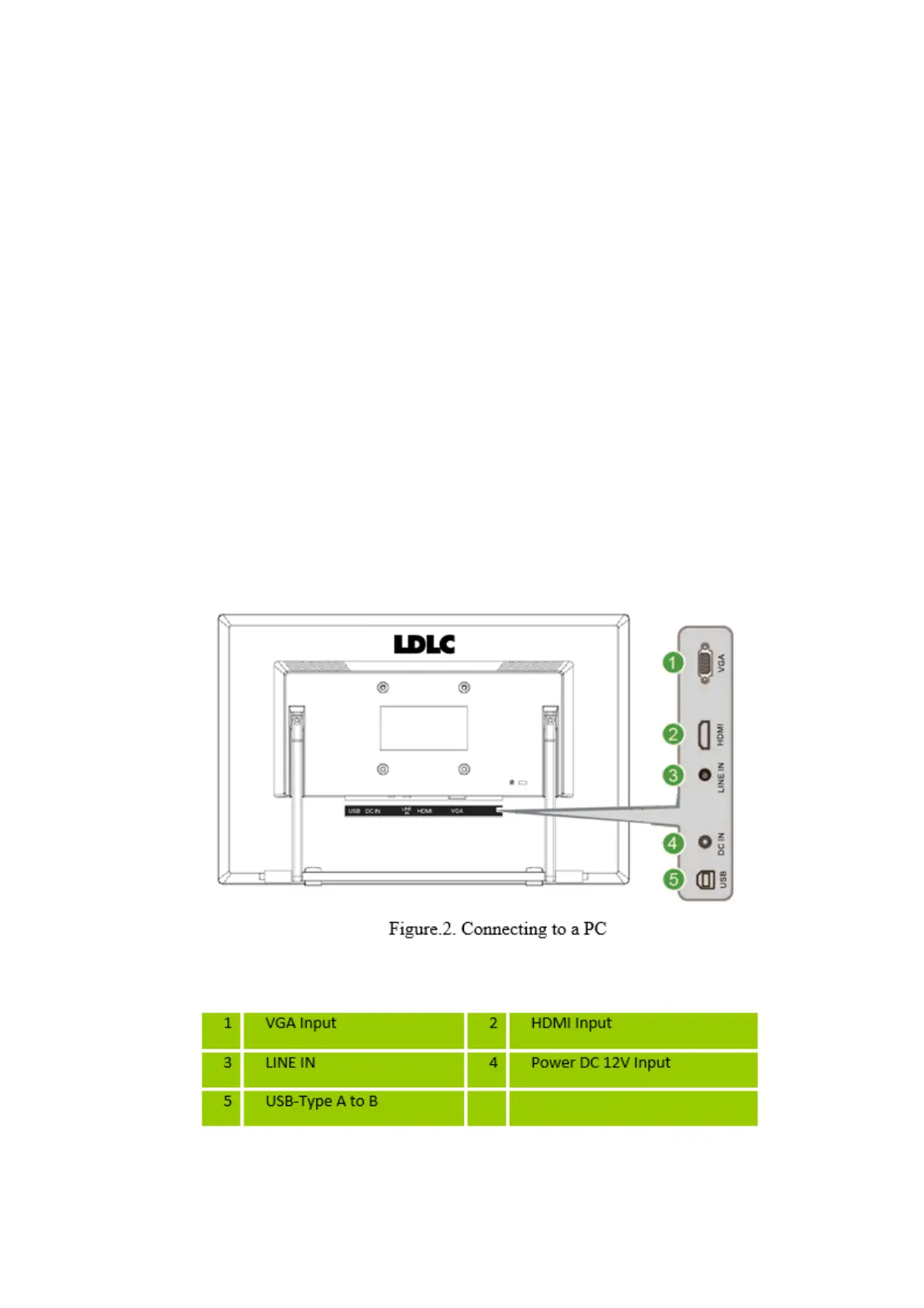 3. Plug one end of the 12V DC adapter to the LCD monitor’s DC input socket, plug one end