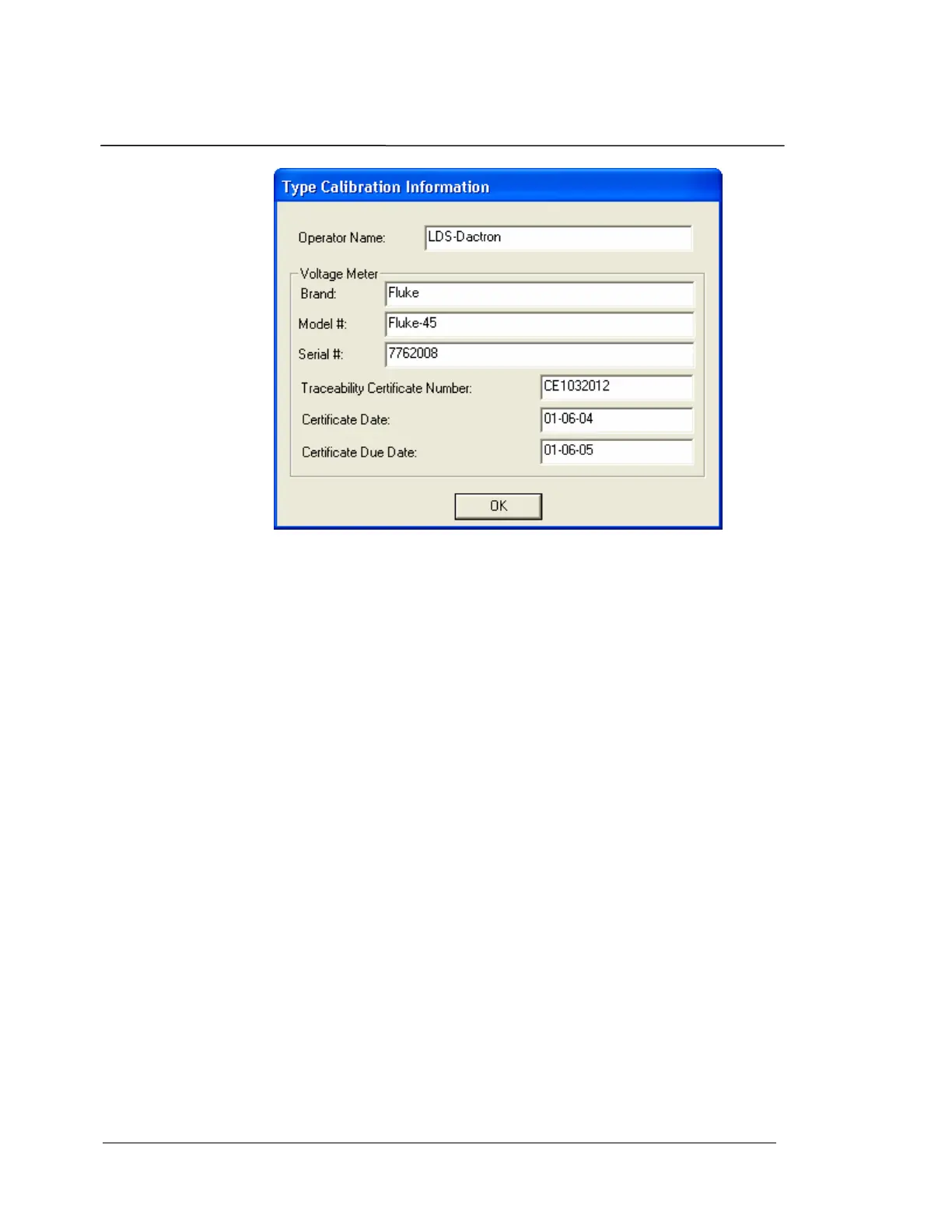 dialog box will appear for the DC 10 Volt full-scale range. The operator