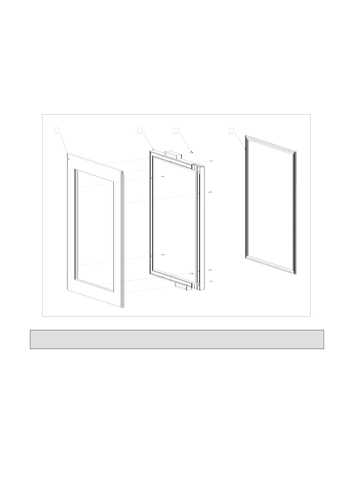 • Attach the wood overlay panel (1) on the glass door (2) by using the eight wood screws ST4x32