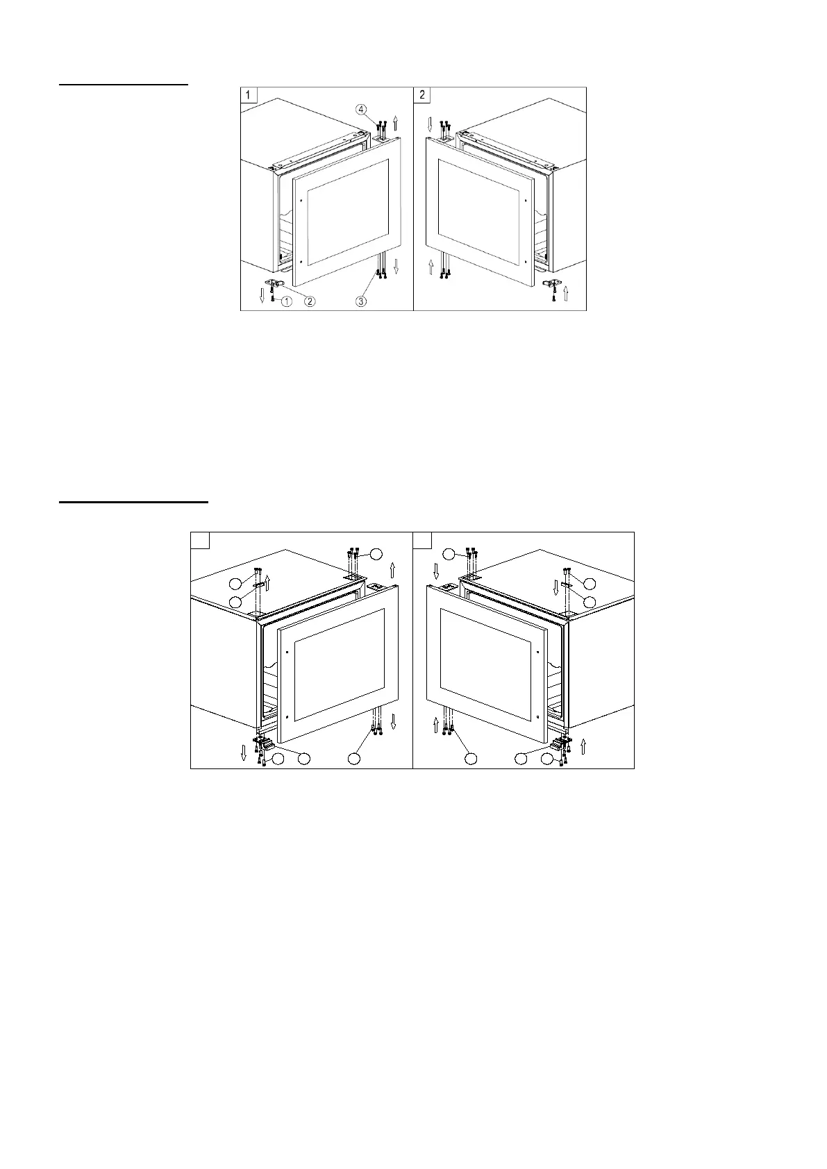 1. Verwijder de deur door de acht blokkeerschroeven 3 en 4 los te schroeven. Zorg ervoor dat u de