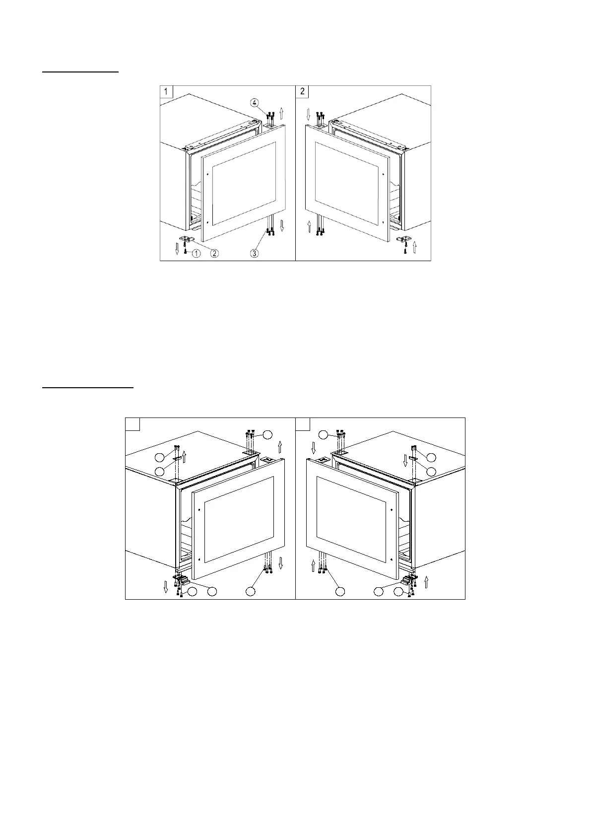 en dévissant les huit vis de blocage 3 et 4. Veillez à maintenir fermement la porte en