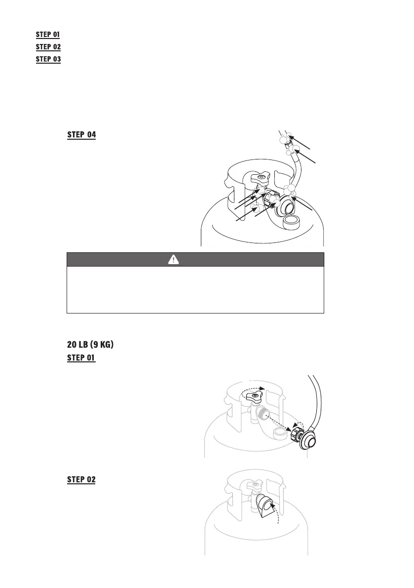 • If you hear a rushing sound, turn gas o immediately. There is a major leak at the connection.