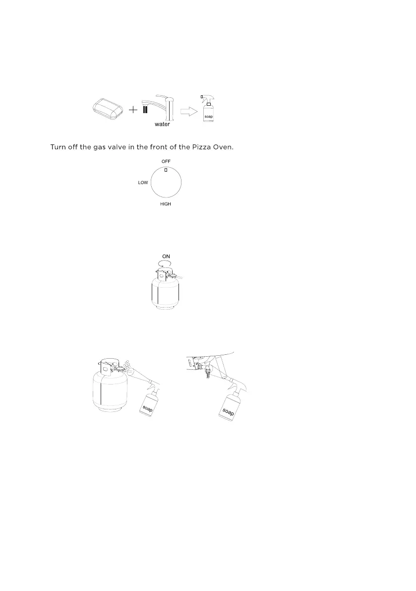 4. Spray or apply soapy water on the gas connections. If a leak is present