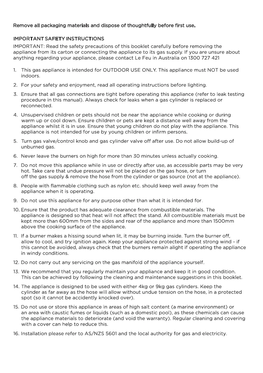 Le Feu TURTLE 2.0 - Important Safety Instructions