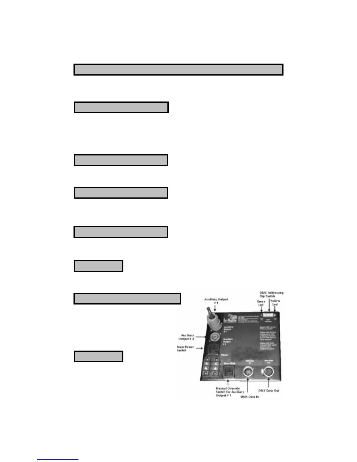 These outputs are 115 Volts and are switched on and off using the DMX Signal.