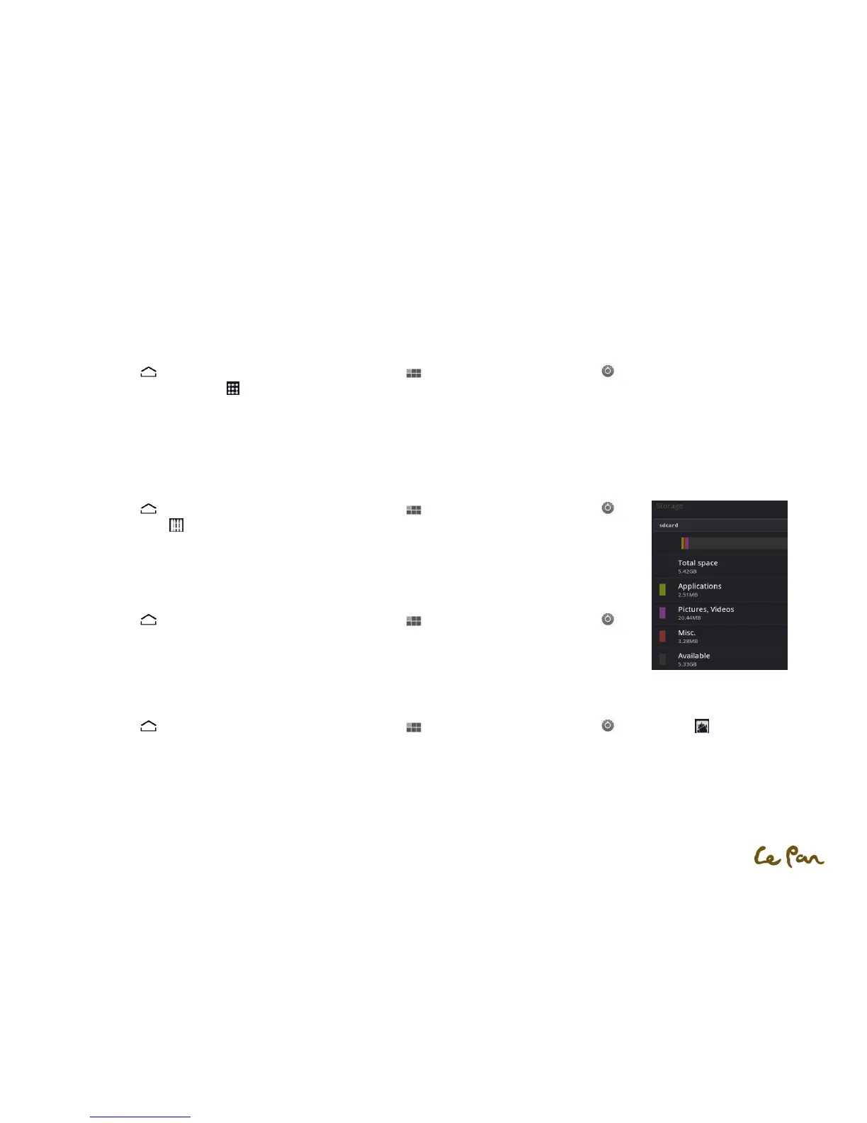 2. Toque de Almacenamiento. Puede comprobar el Tablet y el almacenamiento de la tarjeta Micro SD.