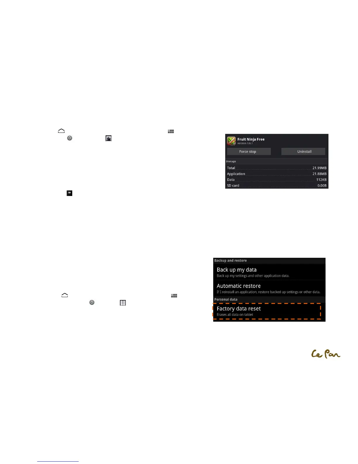 ** Nota: Las aplicaciones que preinstalado en la tableta no se puede desinstalar.