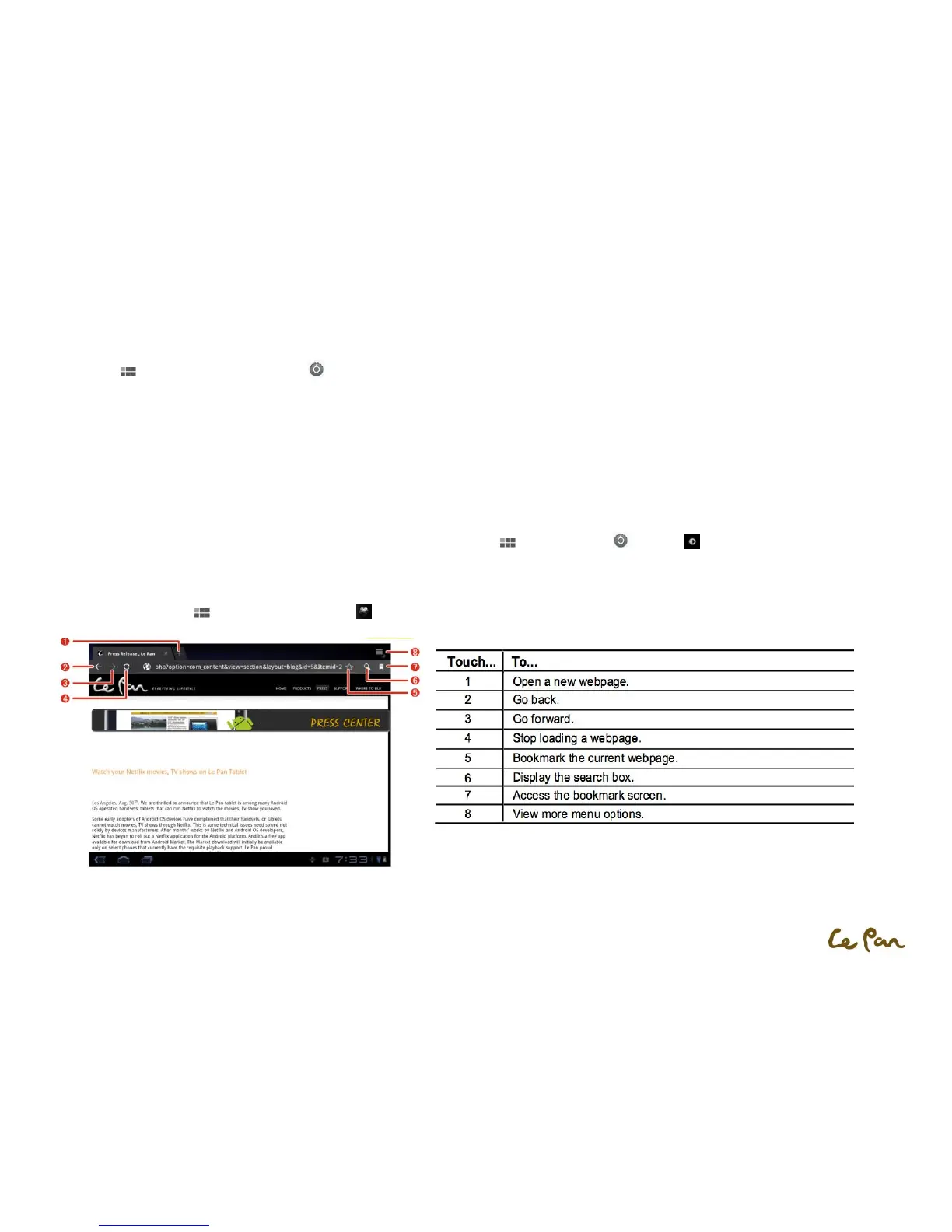El navegador de su tableta ofrece una serie de características que le permiten ver las páginas web al igual que en una computadora de escritorio.