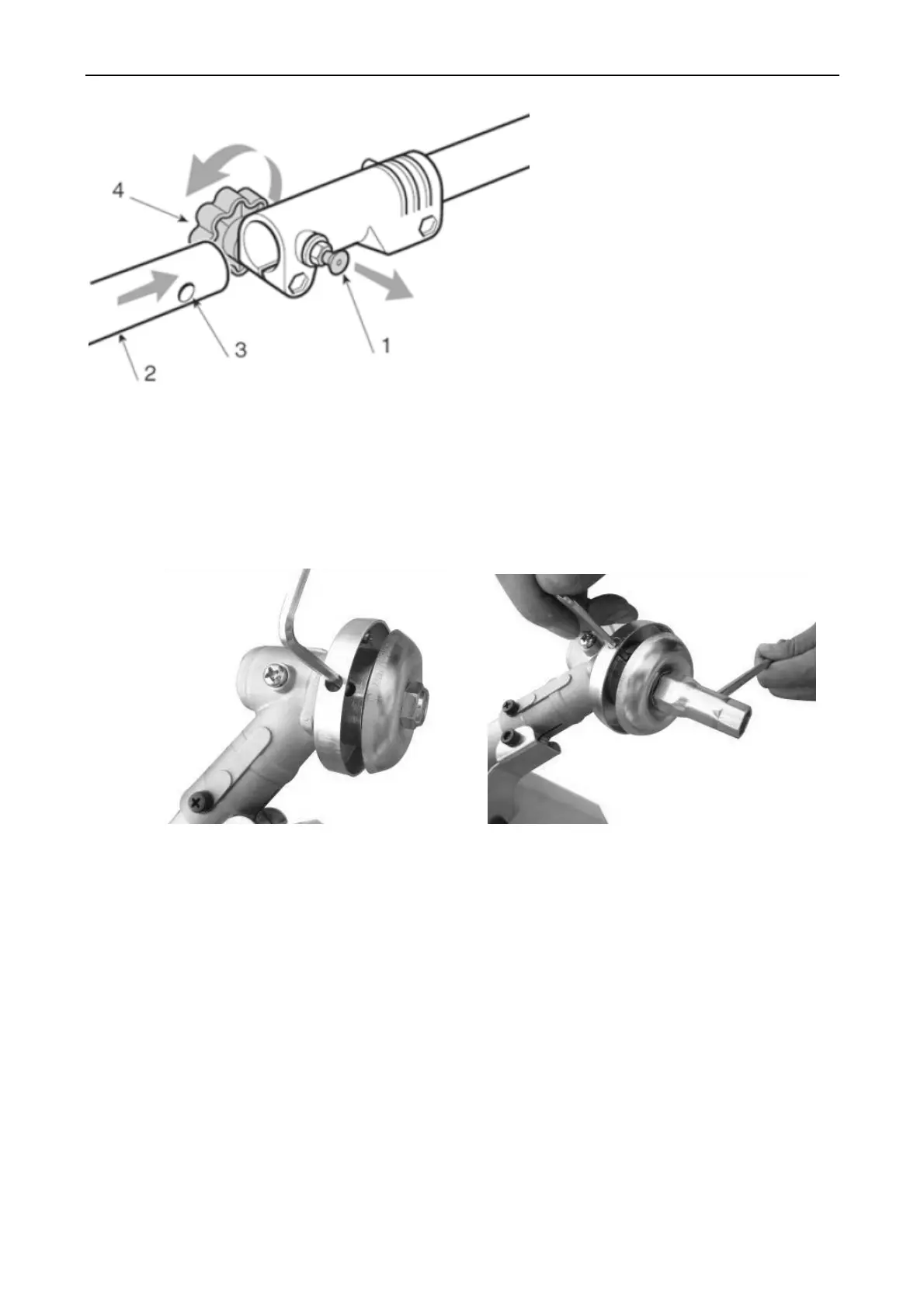 4.1Release the nut. Line up the two holes of flange and shield, use one hex kep to hold the