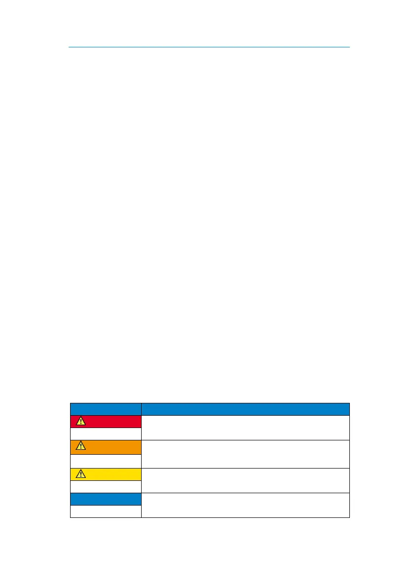 about potential hazards associated with handling the device. The colours and