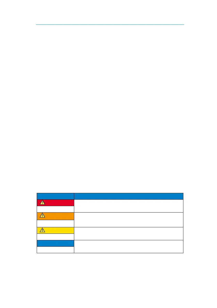 about potential hazards associated with handling the device. The colours and