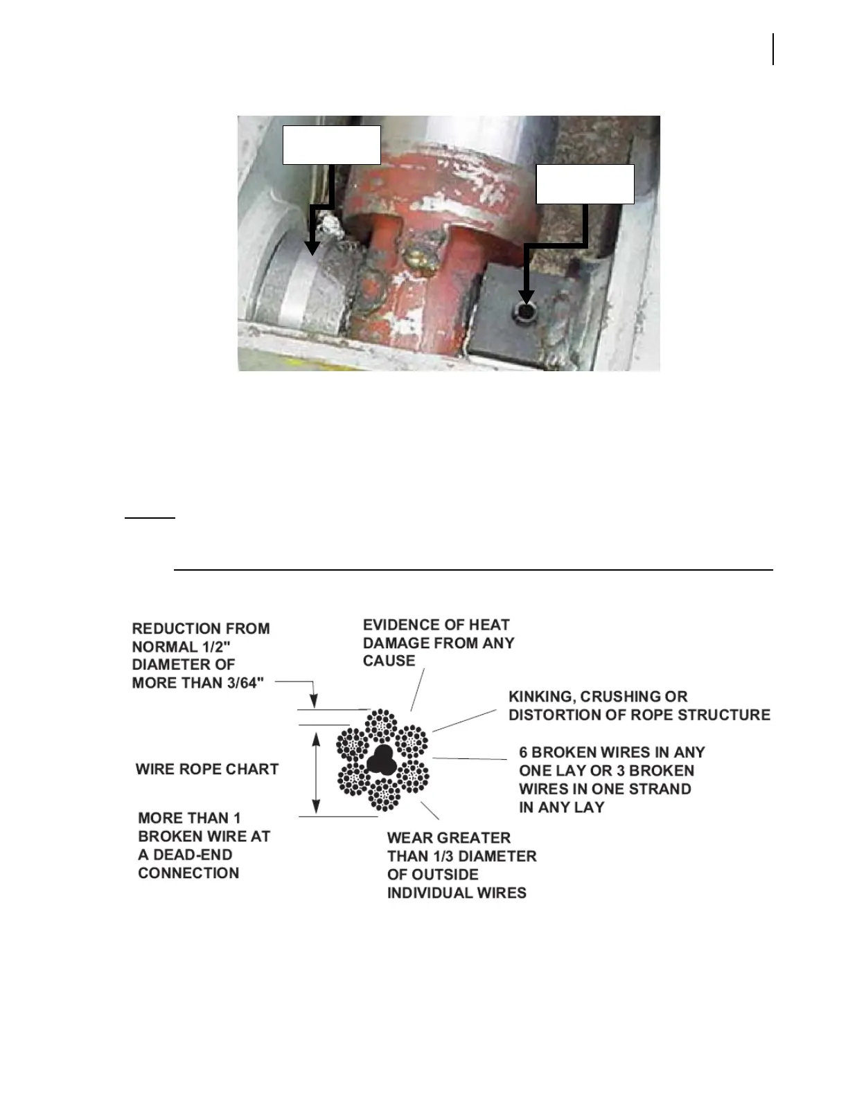 damage, corrosion, stretching or distortion as shown in the wire rope illustration below.