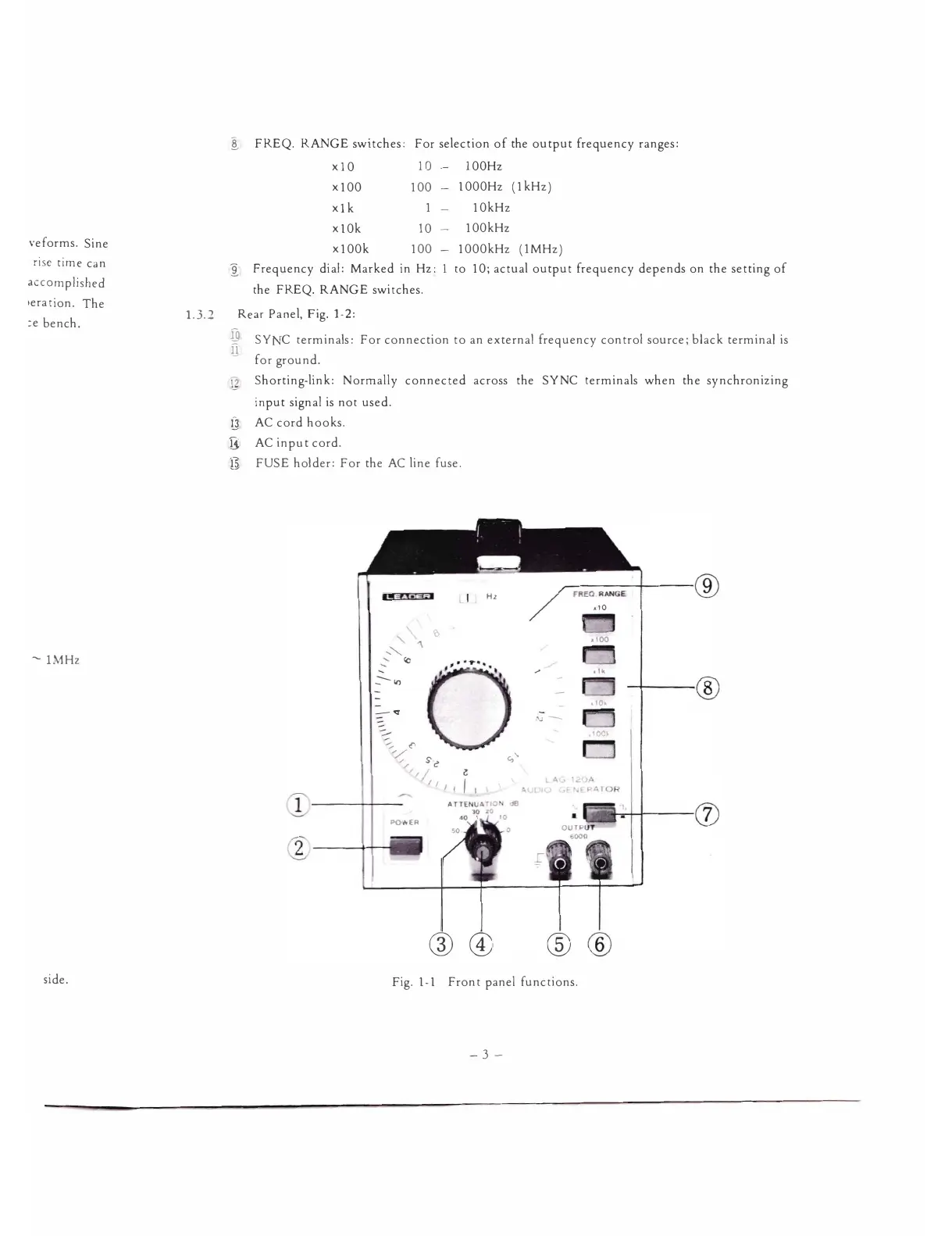 Leader Electronics Corp. LAG-120A - Rear Panel Functions