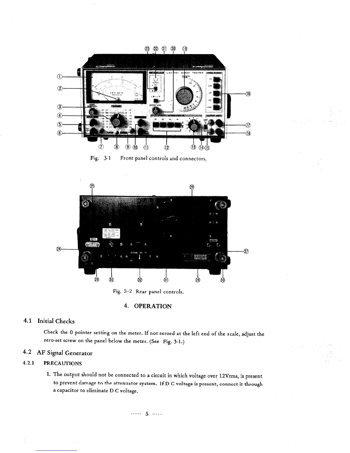 Leader Electronics Corp. LAV-191 - Operation; Initial Checks; AF Signal Generator Precautions