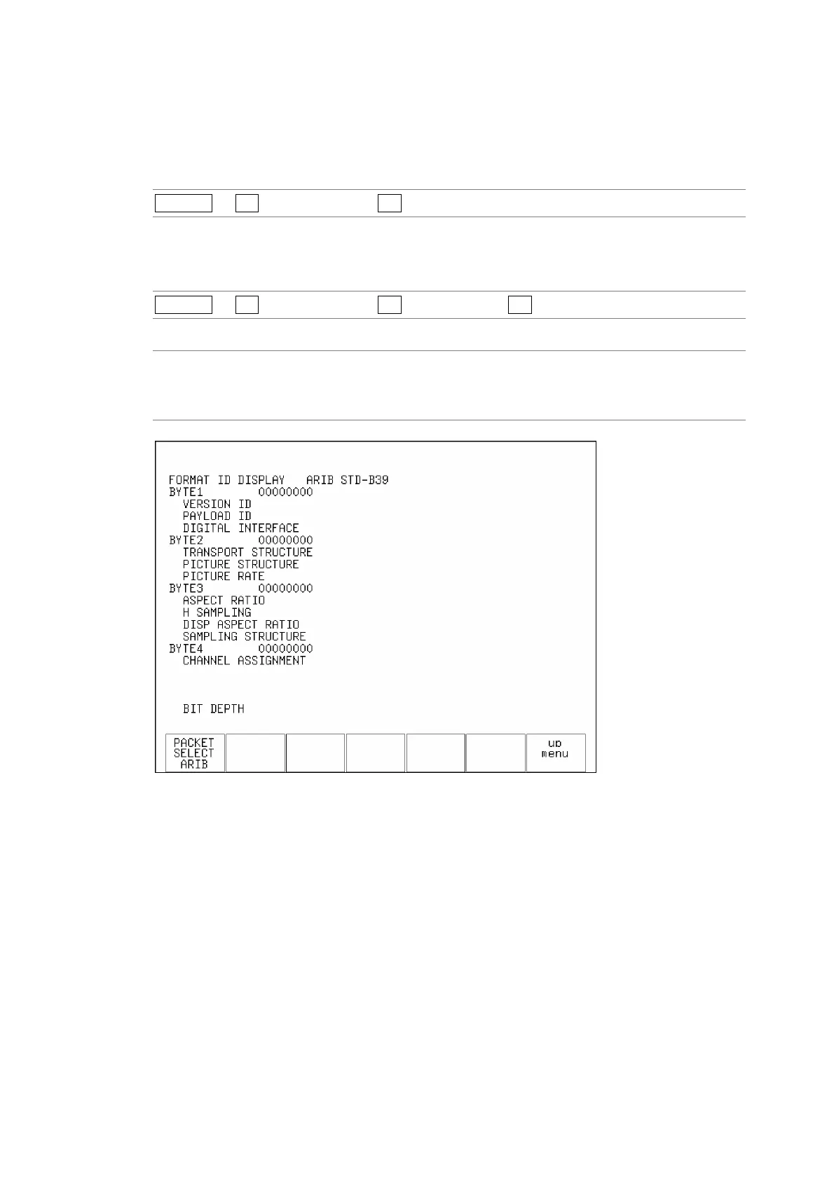 STATUS → F•4 ANC PACKET → F•2 FORMAT ID → F•1 PACKET SELECT