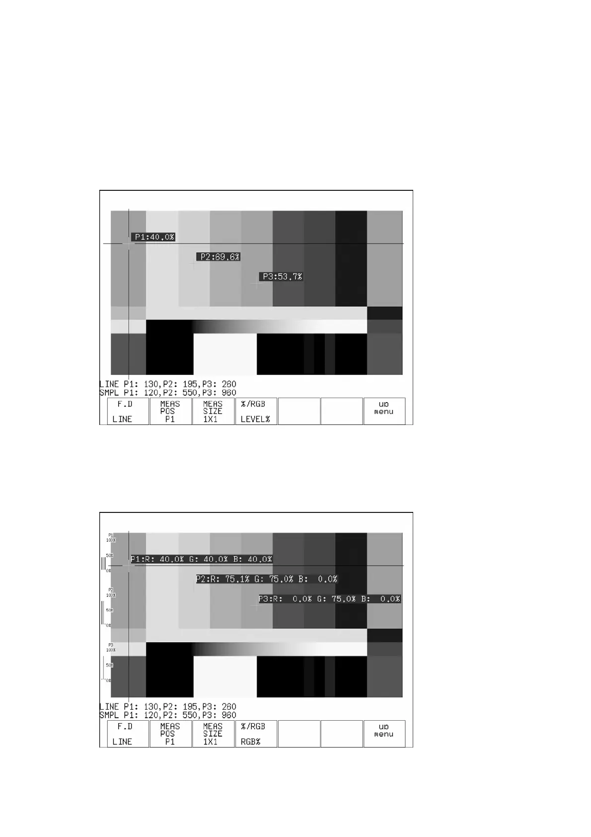 In the percentage and RGB display, you can display luminance levels as level percentages,