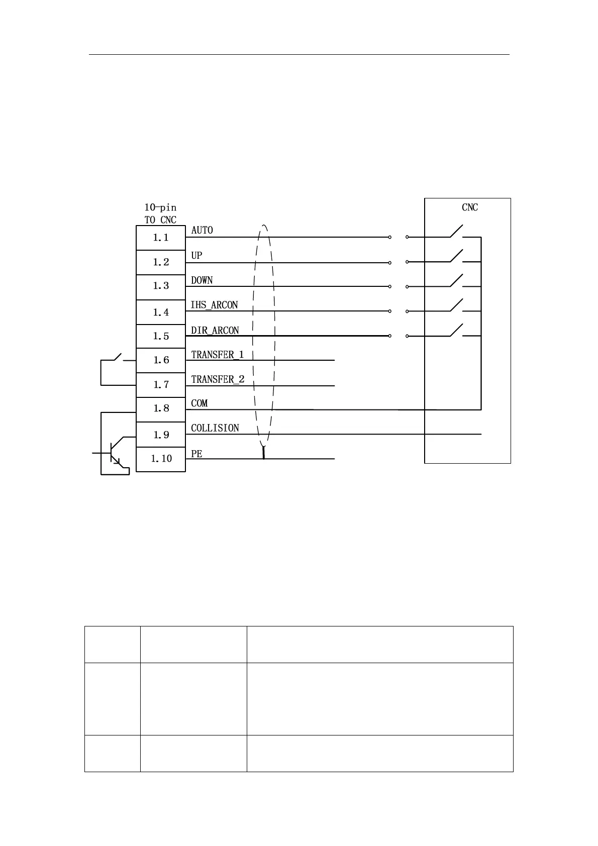 THC connect with the CNC by a socket which have 10 pin,the diagram below
