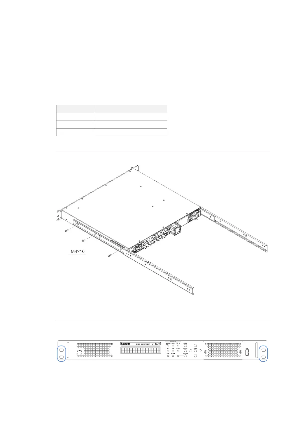 The recommended slide rails are shown in the following table. To mount this instrument on a