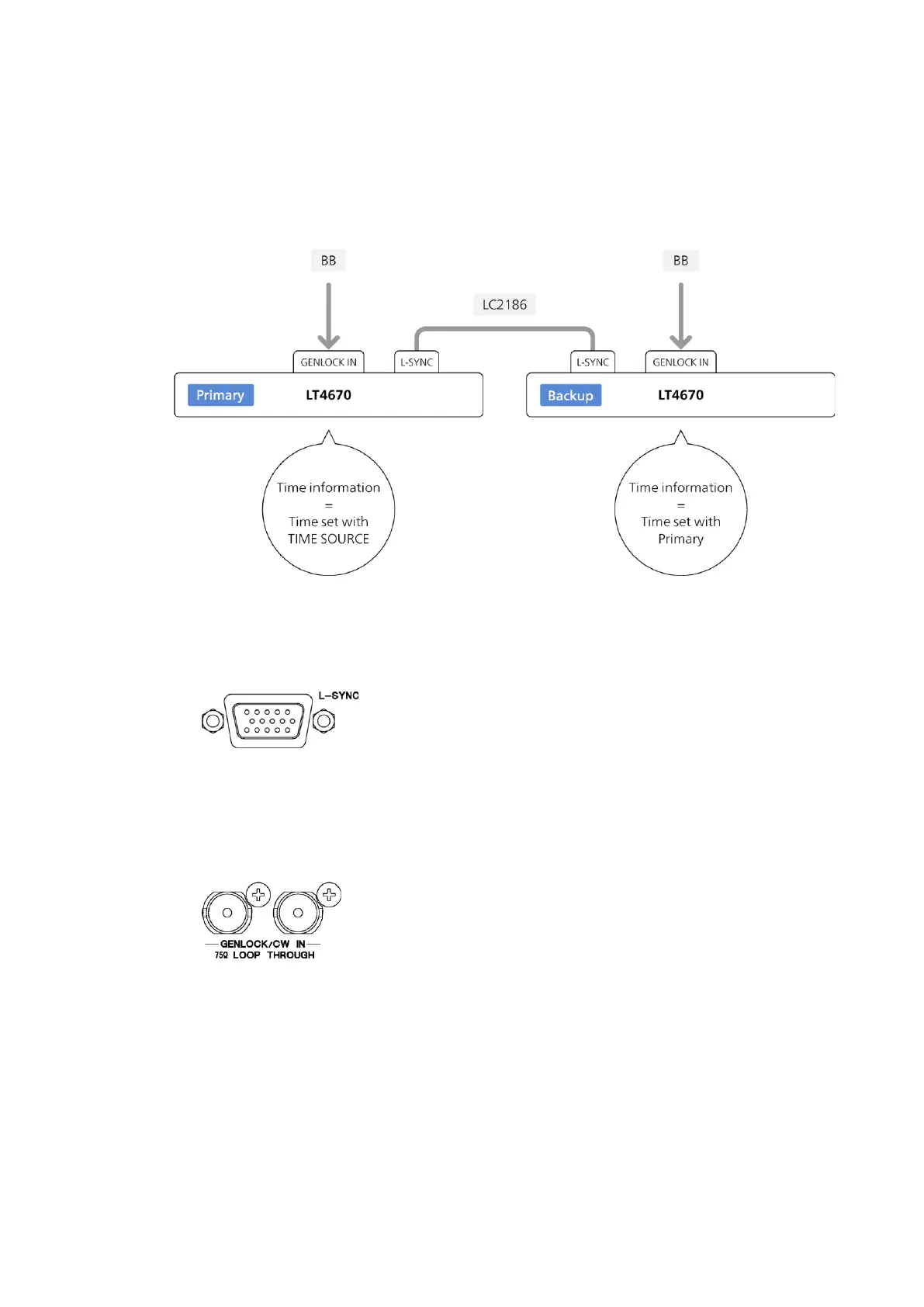 1. Connect the L-SYNC connectors of the LT4670s with an L-SYNC cable.