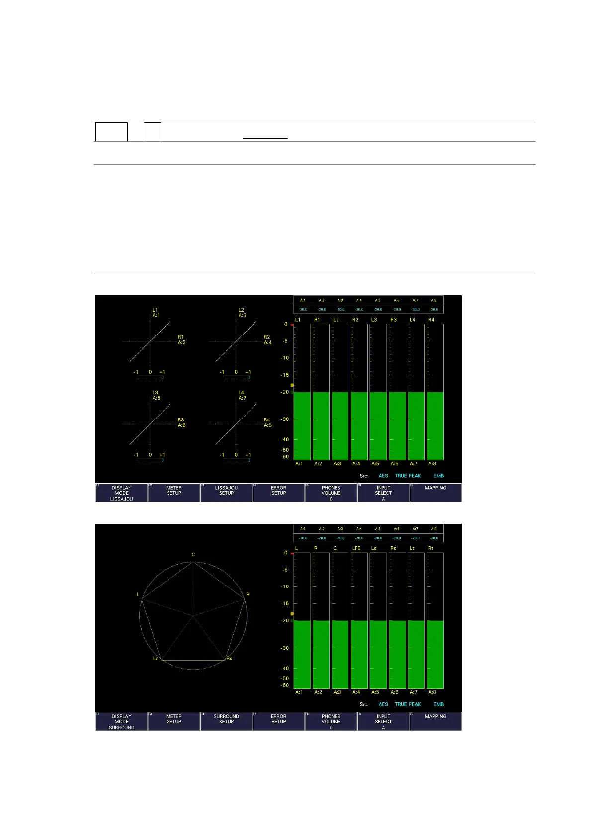 AUDIO → F•1 DISPLAY MODE: LISSAJOU / SURROUND / STATUS
