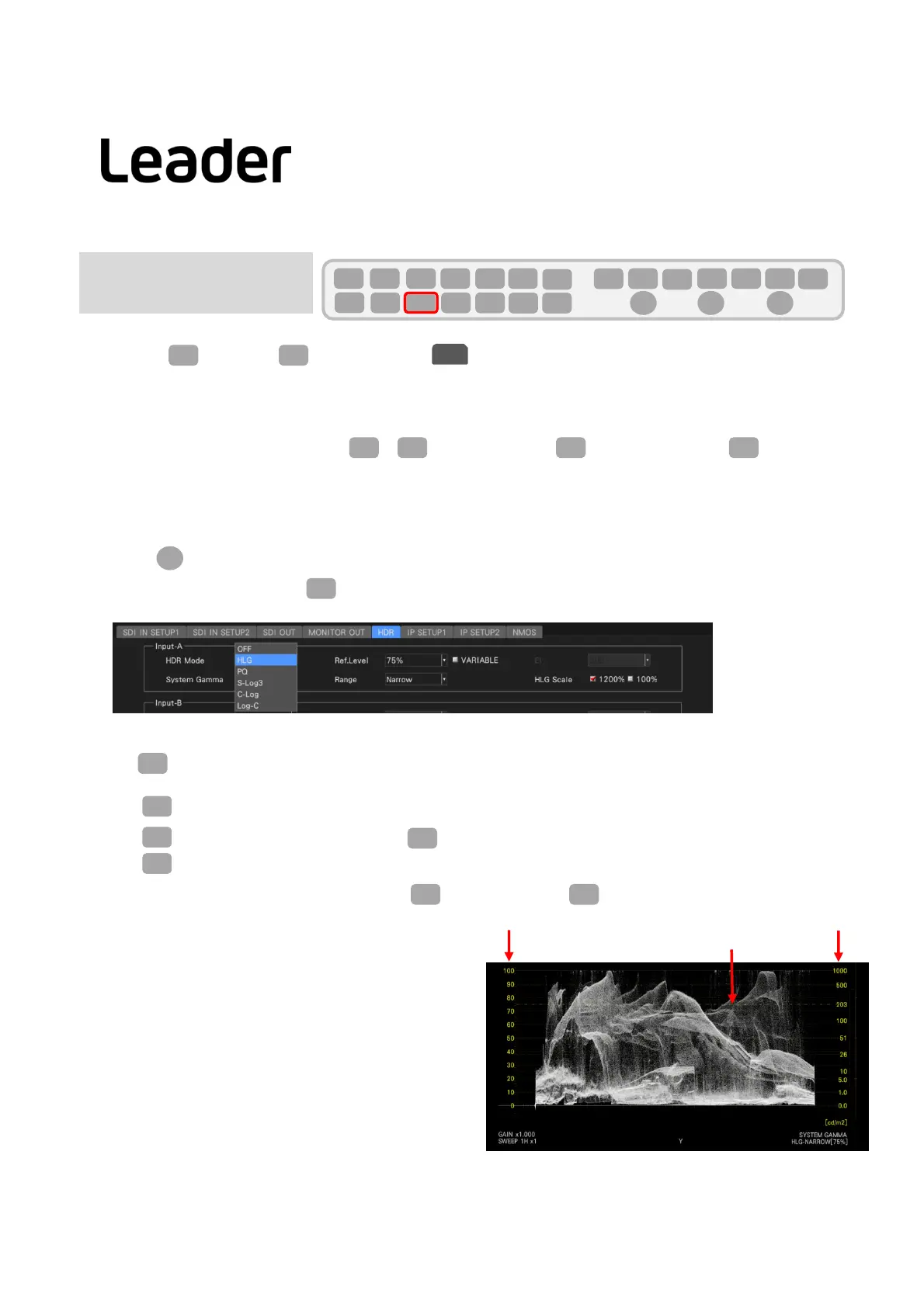 ・WhenWF(WAVEFORM)ispressedaftersettingtheHDRsystem,thewaveformisdisplayedandtheHDRscale