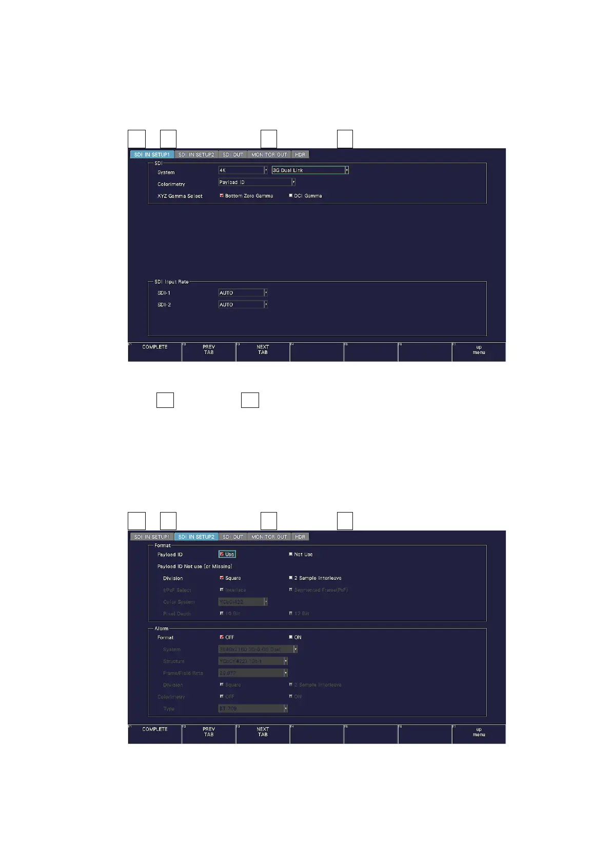2. Press F•2 PREV TAB or F•3 NEXT TAB, and under SETTING on the SDI IN SETUP2 tab,