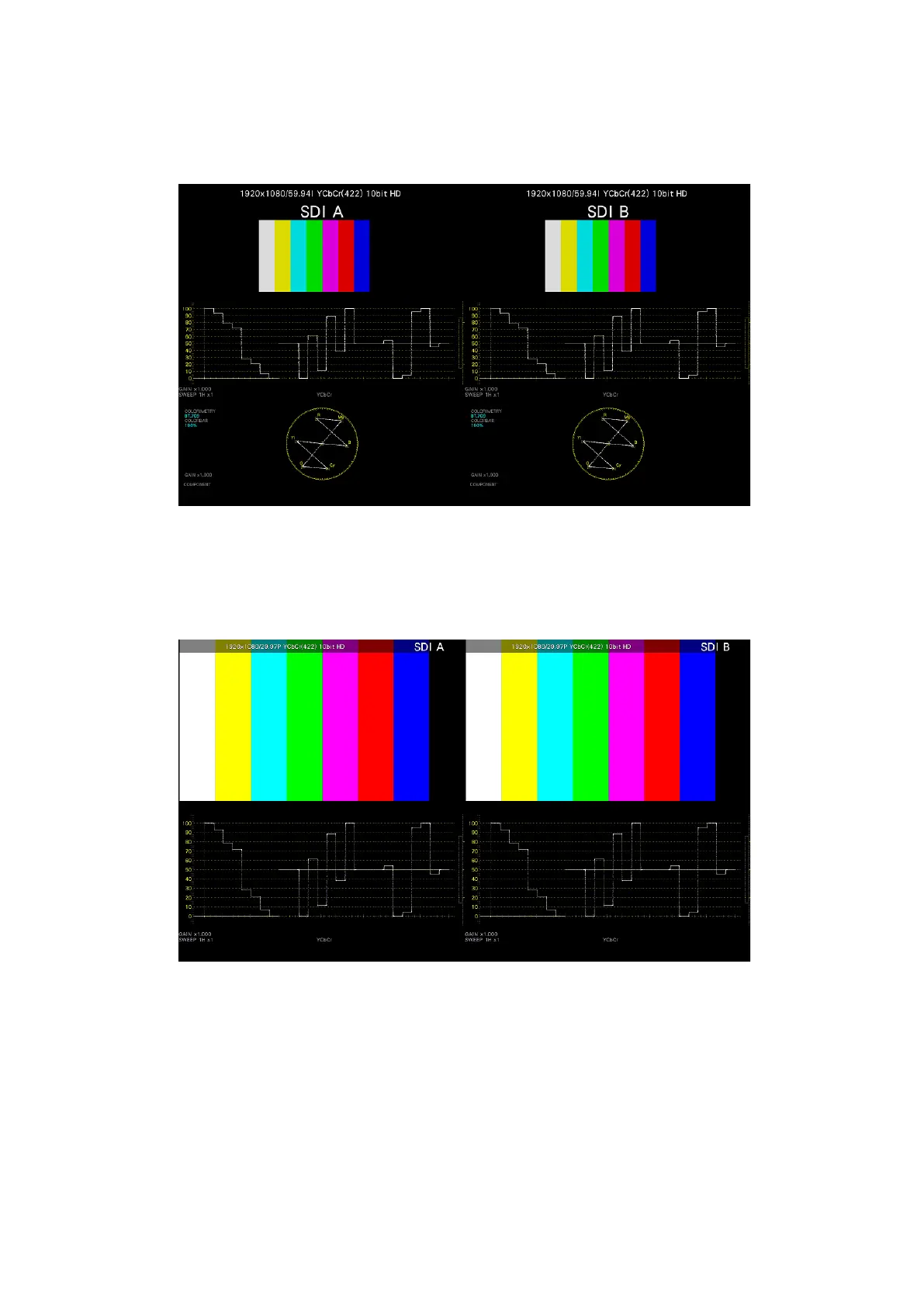 The picture and video signal waveform are displayed in the top and bottom screens.