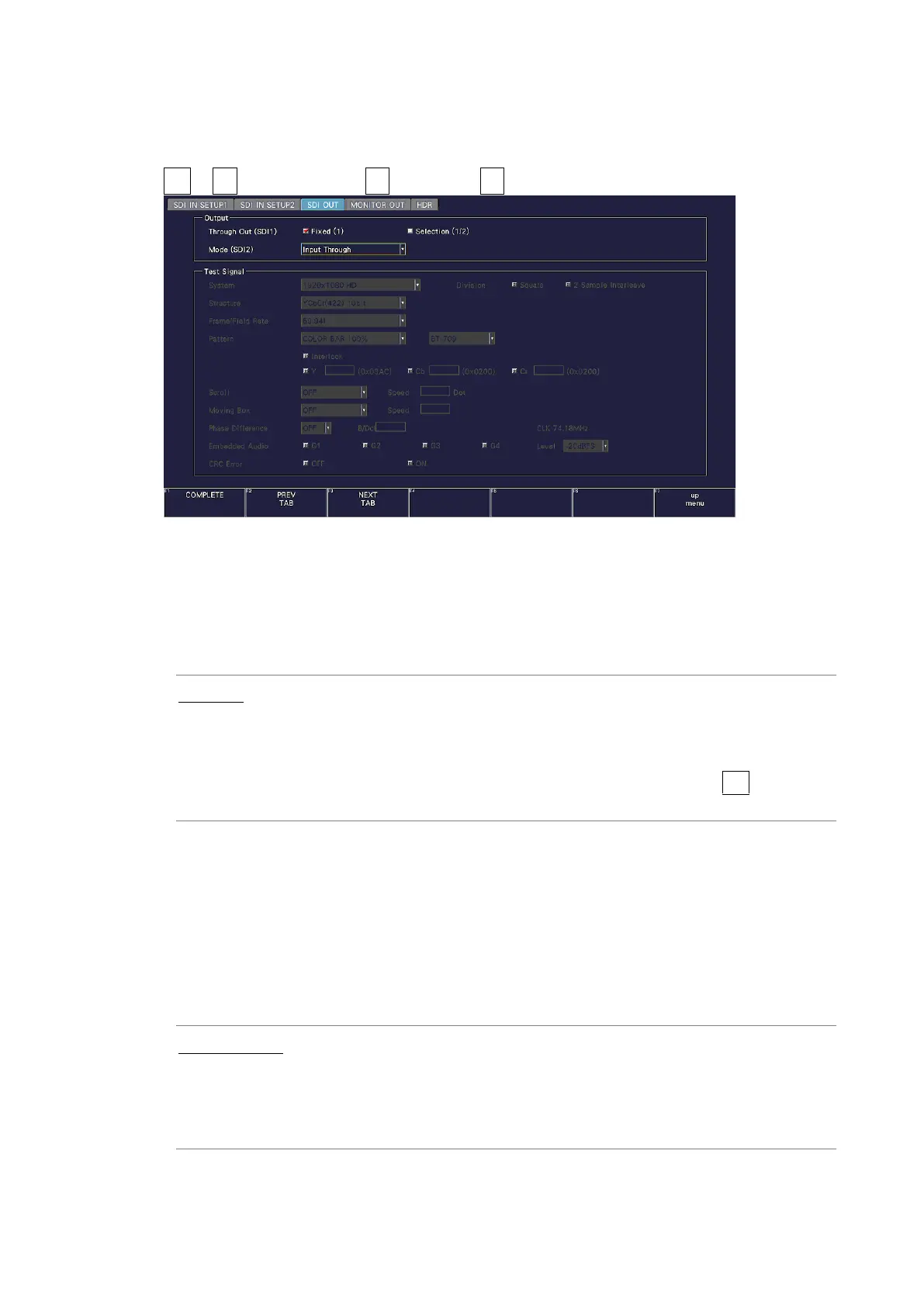 Out, SDI OUTPUT 2 transmits the instrument’s screen for monitoring purposes. On the