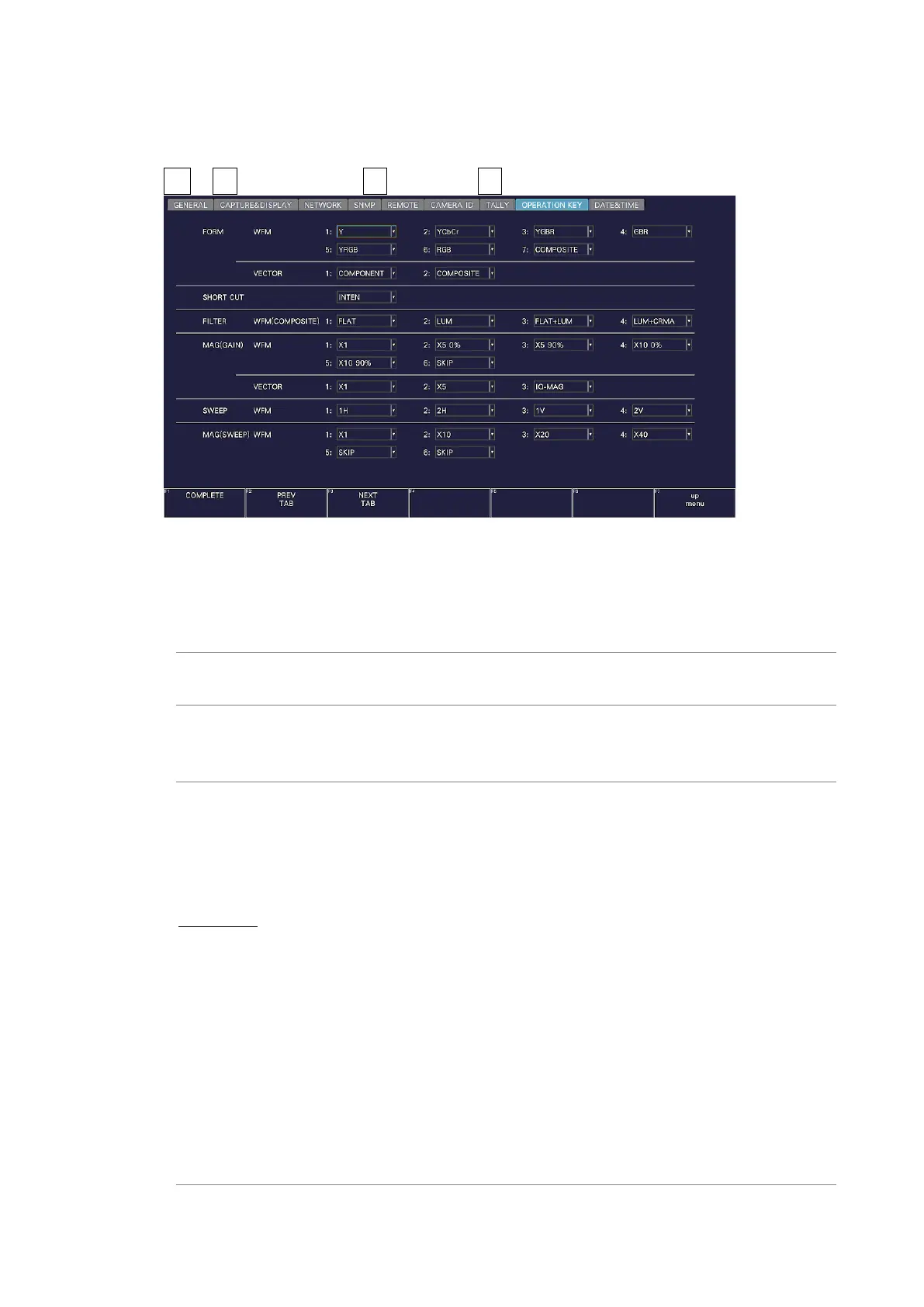 video signal waveform display or vector display. Select SKIP to skip an item.