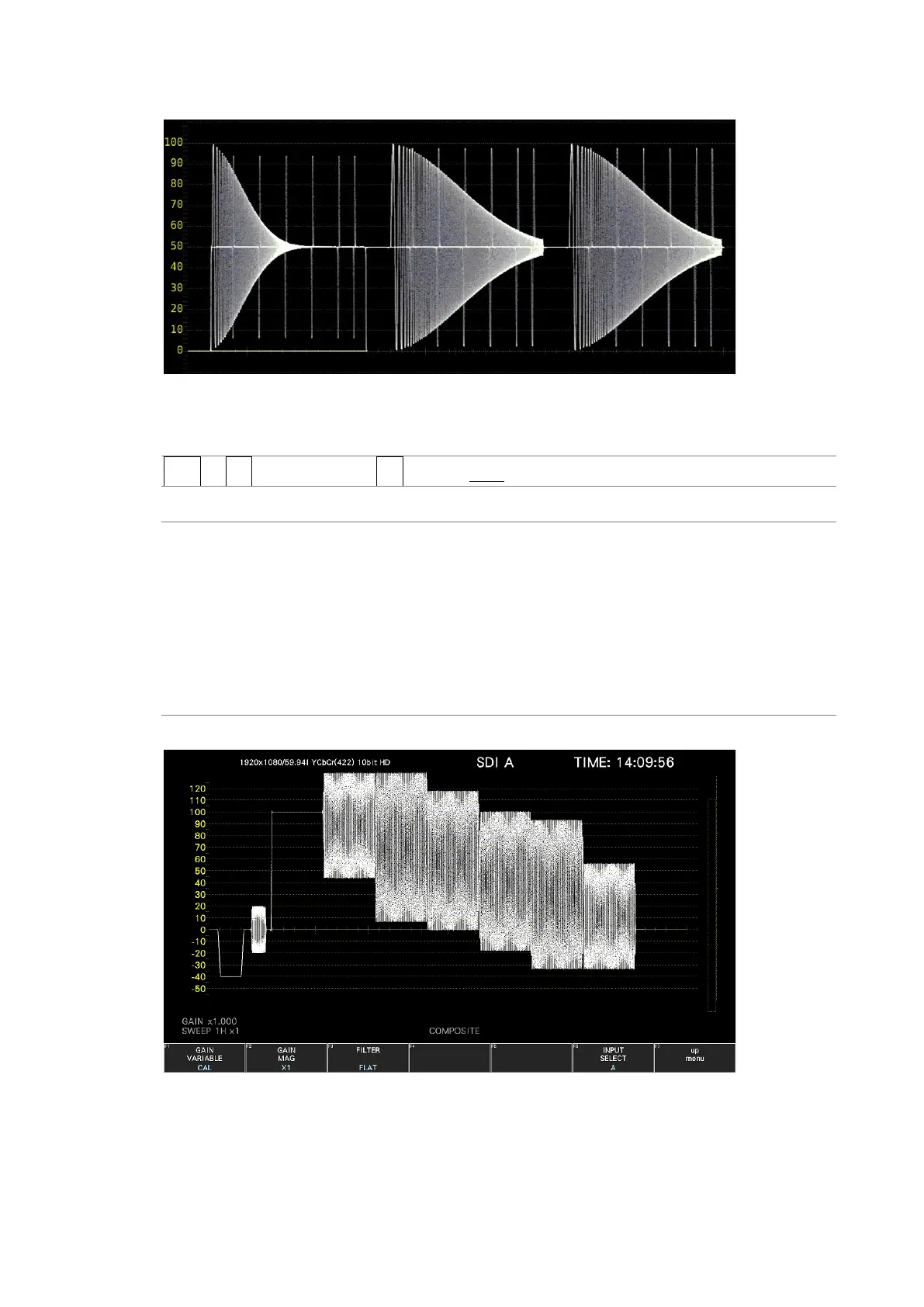 WFM → F•2 GAIN/FILTER → F•3 FILTER: FLAT / LUM / FLAT+LUM / LUM+CRMA