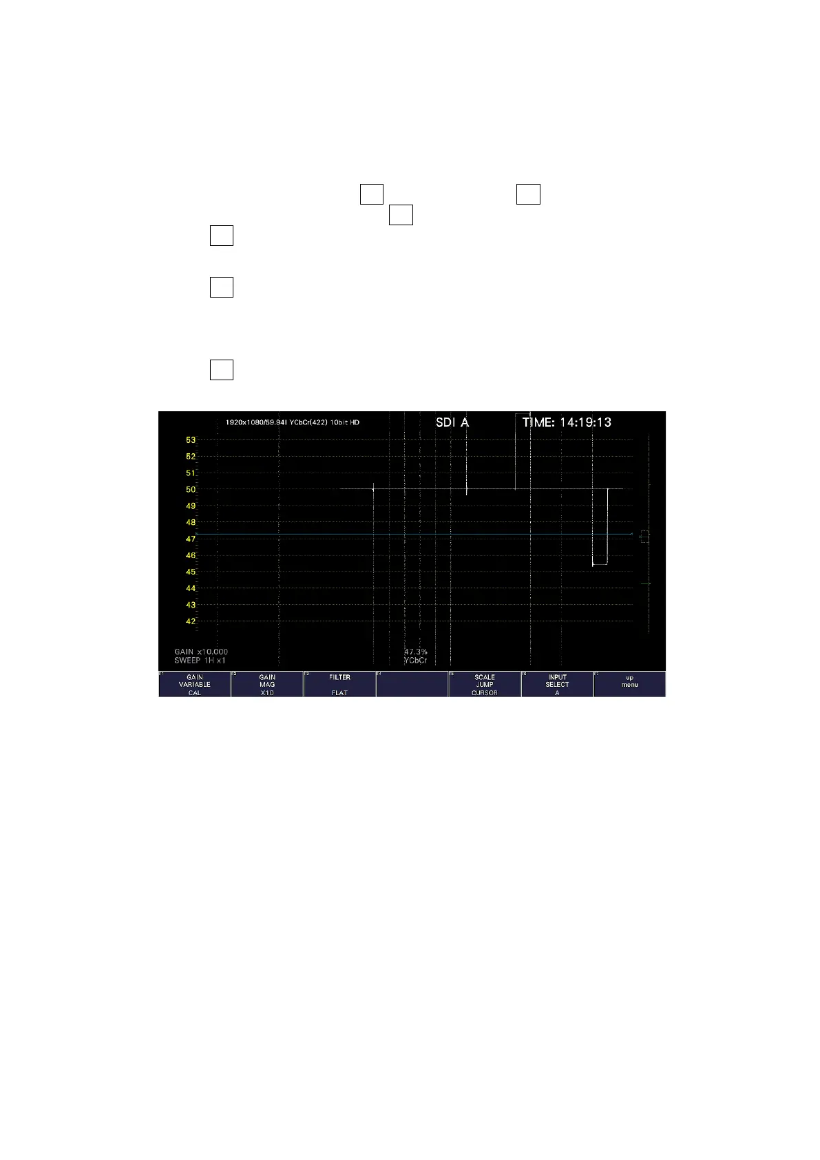 6. Set F•2 GAIN MAG to X5 or X10 to expand the area near the Y-axis cursor.