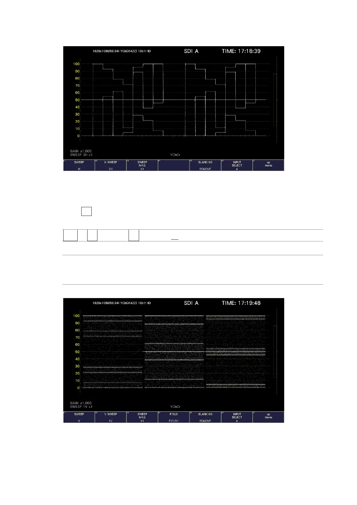 WFM → F•3 SWEEP → F•2 V SWEEP: 1V / 2V