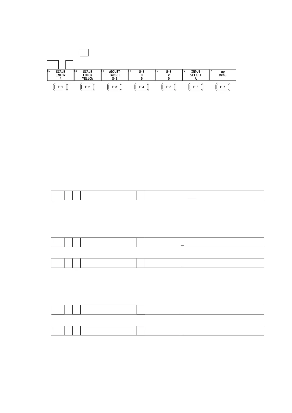 VECT → F•2 RGB VECTOR SCALE → F•5 G-B V: -500 – 0 - 500