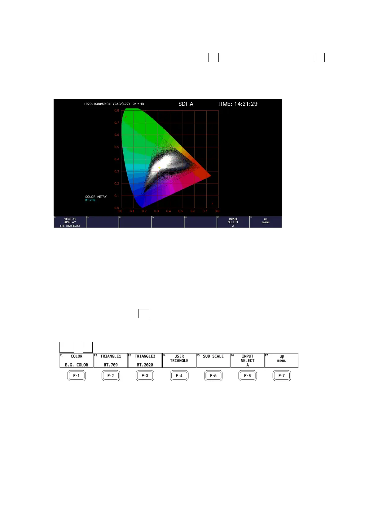 When VECTOR DISPLAY is set to VECT, 5BAR or HISTOGRAM, see 11, “CIE Chromaticity