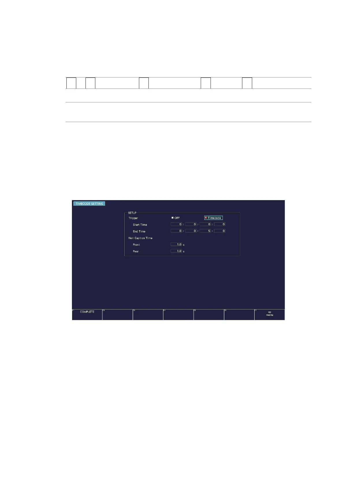 Time. If Time Code on the SYS menu is set to Real Time, you cannot set the trigger.