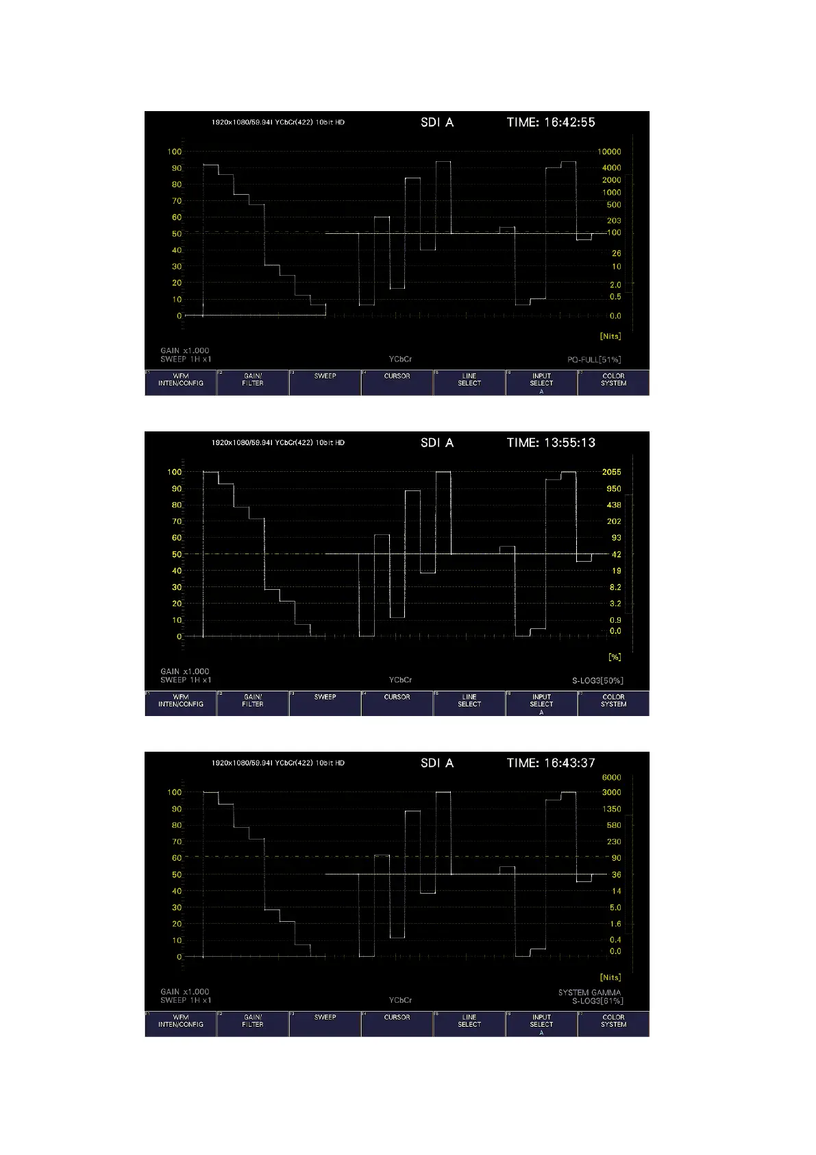 HDR Mode = S-Log3、SYSTEM GAMMA = ON