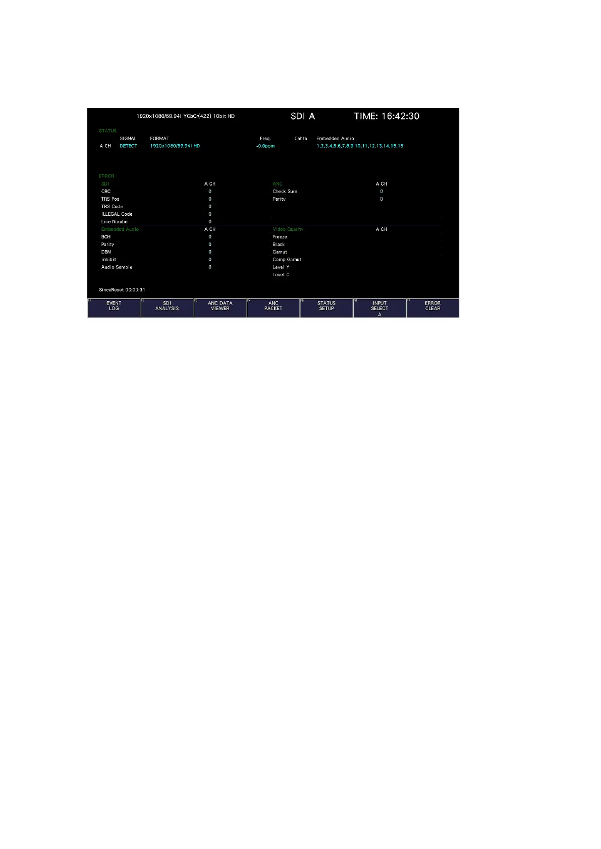 If the instrument is receiving an SDI signal, "DETECT" is displayed. Otherwise, "NO SIGNAL"