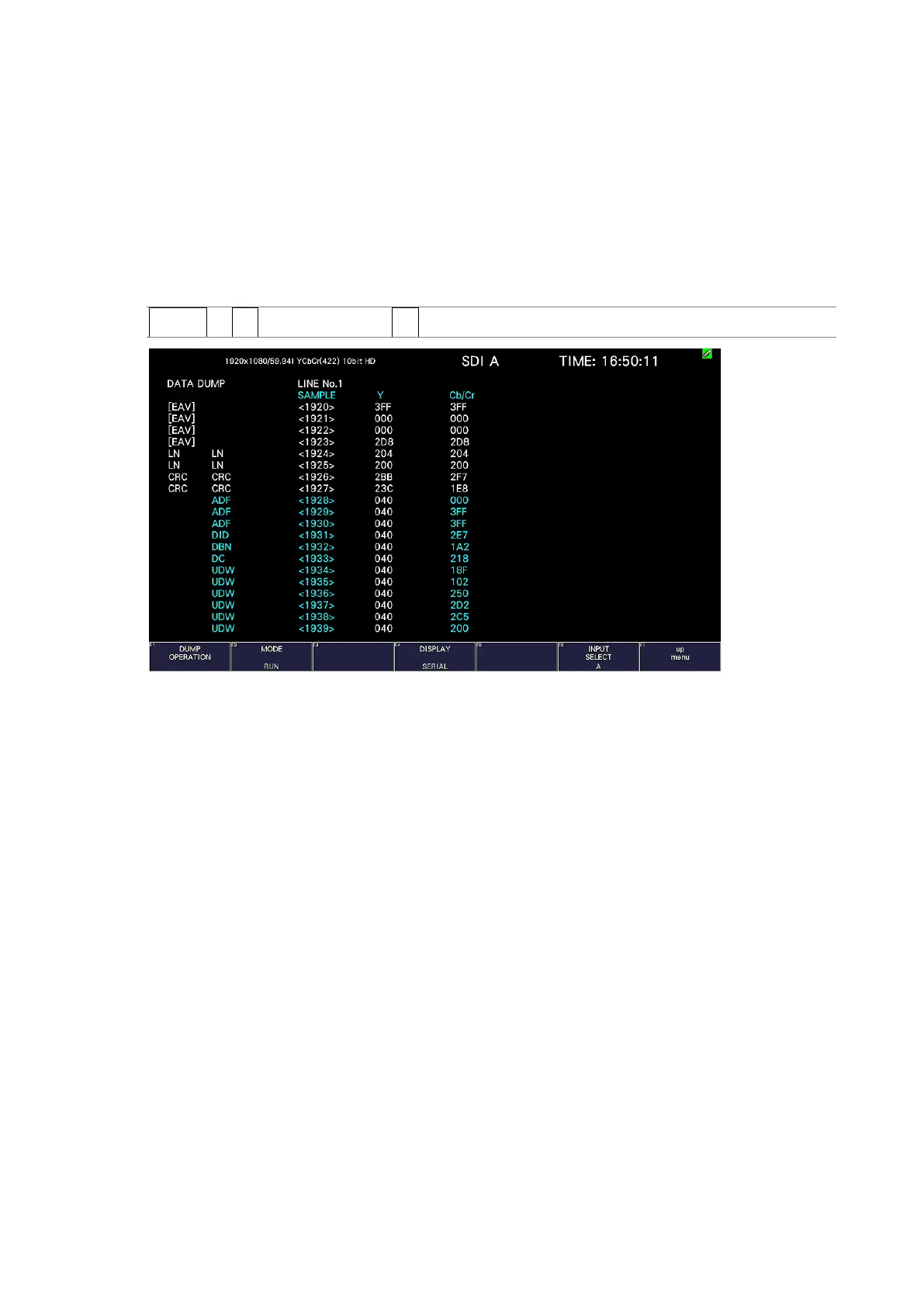 STATUS → F•2 SDI ANALYSIS → F•1 DATA DUMP