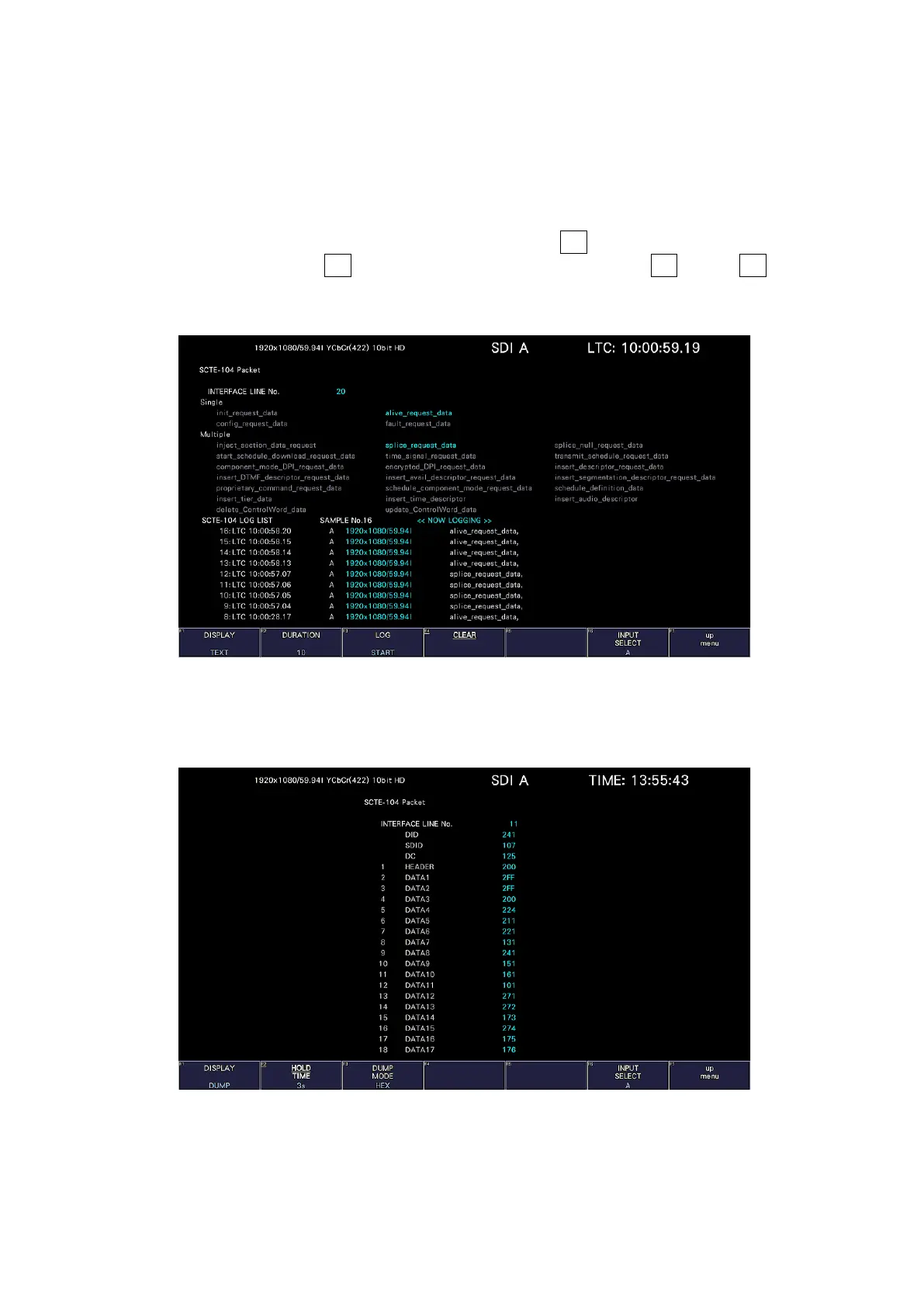When a SCTE-104 message is detected, the dump data of the message is displayed.