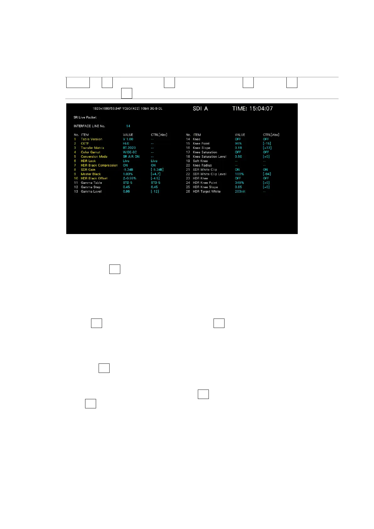 STATUS → F•4 ANC PACKET → F•1 PACKET ANALYSIS → F•4 V-ANC → F•3 SCTE /