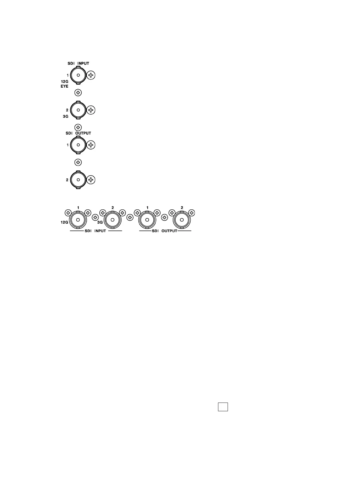 SDI OUTPUT 1 transmits reclocked signal of the signal received through SDI INPUT 1/2.