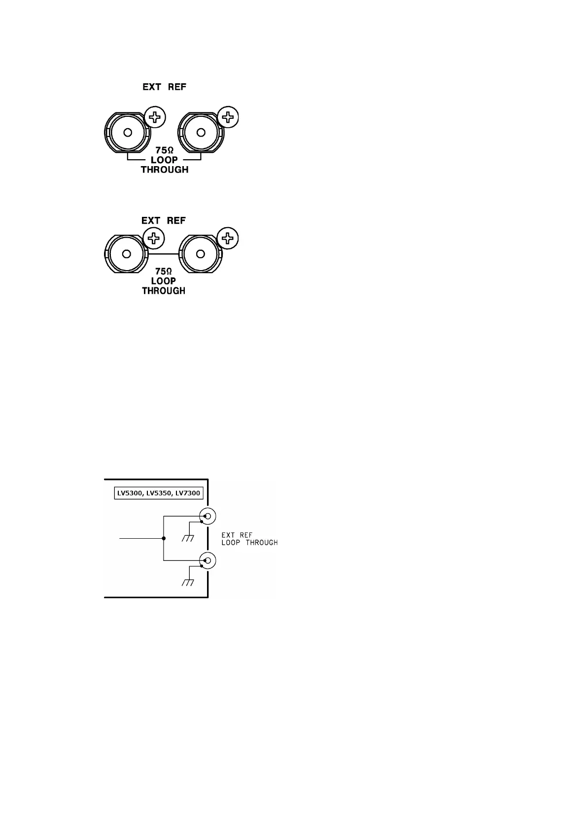 As shown in the figure below, the external sync signal input connectors are loop-through.
