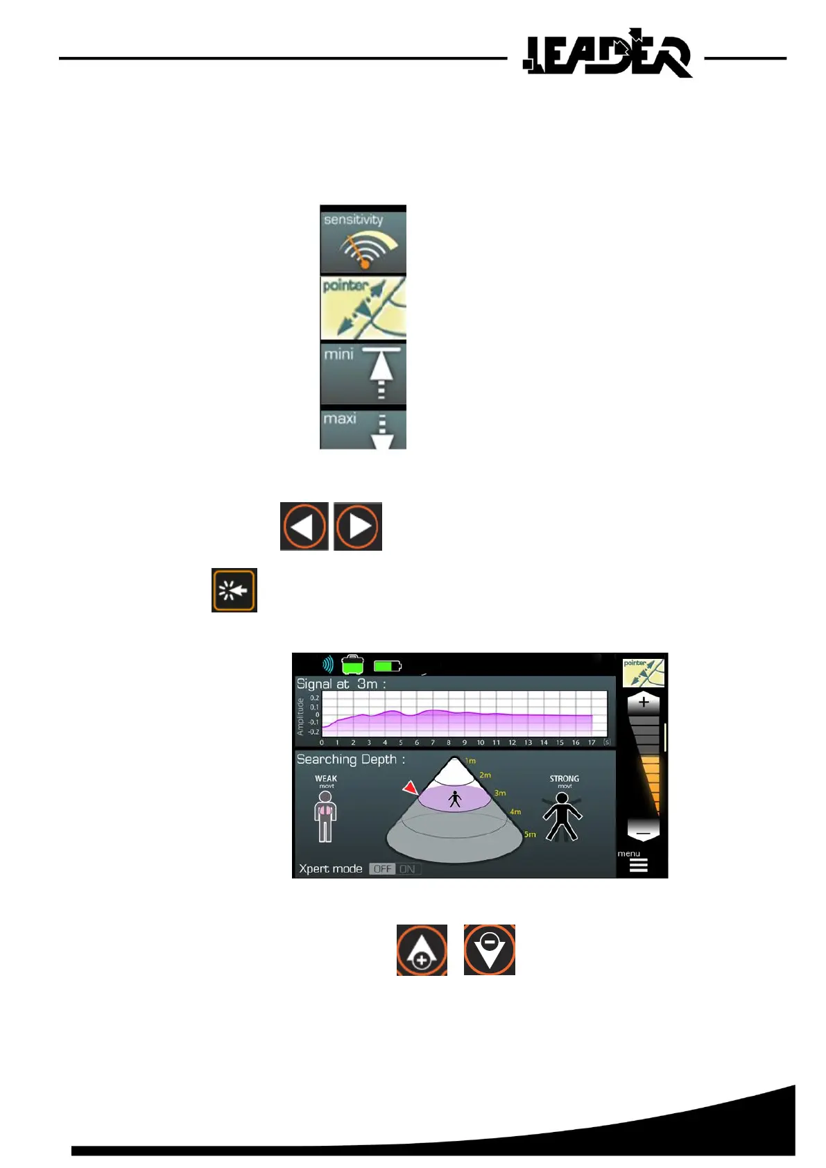 For the Sensitivity, Pointer, Mini, Maxi and Brightness functions, adjustment is as follows: