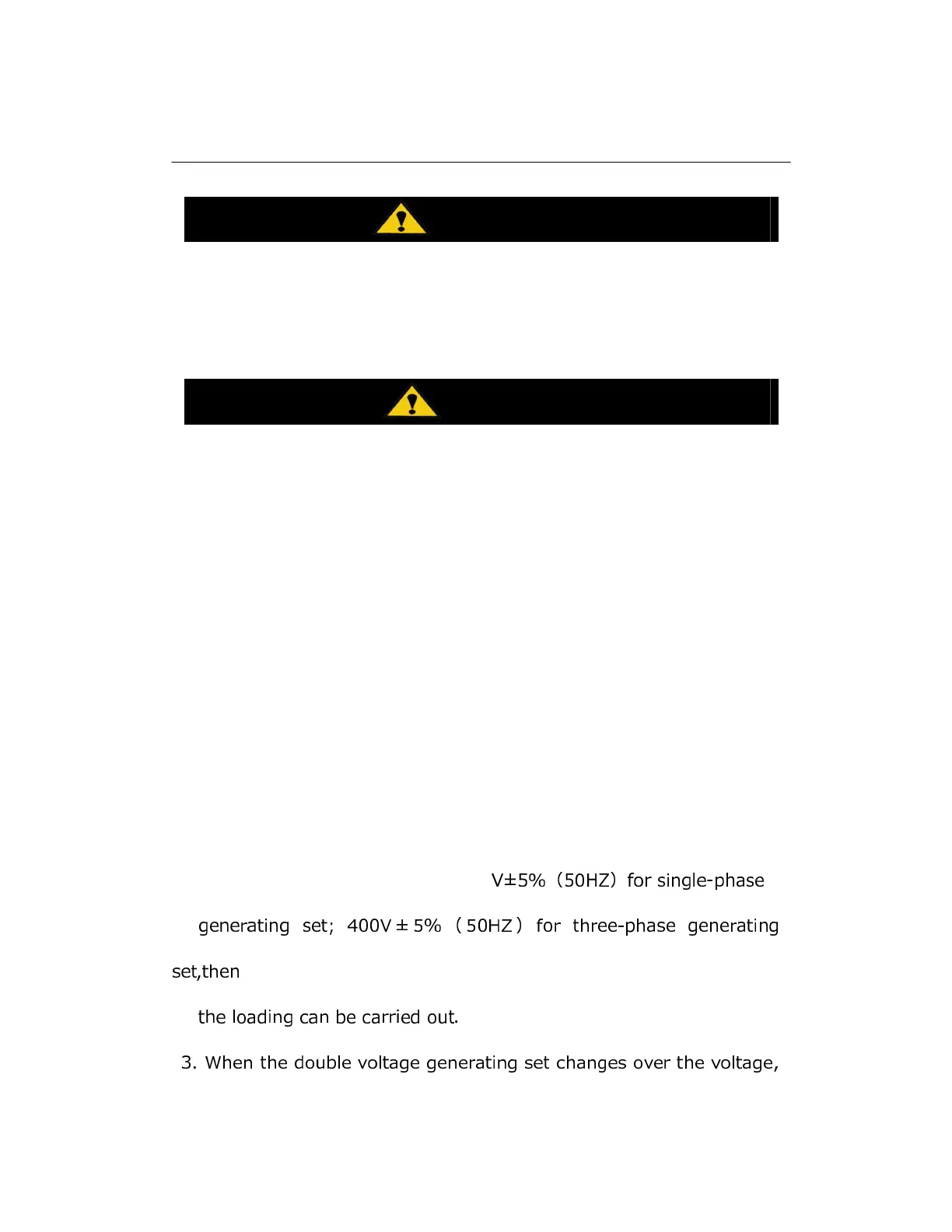 generating set; 400V ± 5% ( 50HZ ) for three-phase generating