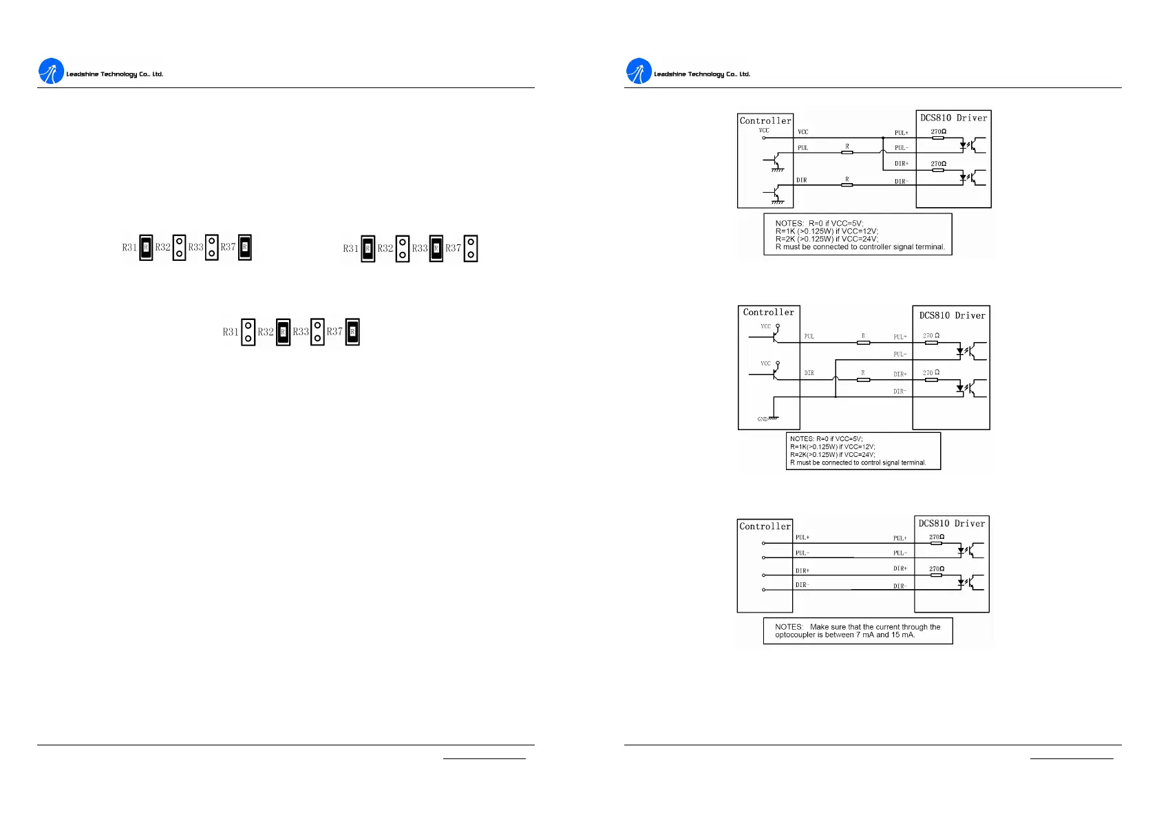 (a) R31, R37 short circuit, PUL/DIR mode (b) R31, R37 short circuit, PUL/DIR mode